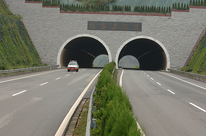 滬蓉國(guó)道主干線湖北省宜昌(長(zhǎng)江大橋)至長(zhǎng)陽(yáng)(白氏坪)公路殷家?guī)r雙聯(lián)拱隧道,長(zhǎng)186m。