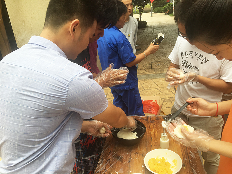 品嘗月餅也是中秋節(jié)的習(xí)俗之一,如果能品嘗自己親手制作的月餅,這個中秋節(jié)肯定更加難忘。活動第二項就是制作冰皮月餅,大家一邊自己動手和冰皮、包餡、壓花定型,一邊相互交流著關(guān)于中秋和月餅的故事??此坪唵蔚闹谱鬟^程,要做出漂亮的月餅也讓大家費了不少心思。有些止不住饞的小伙伴,還沒等做完就迫不及待的嘗鮮了,也有些舍不得吃的,說要帶回家與家人分享。