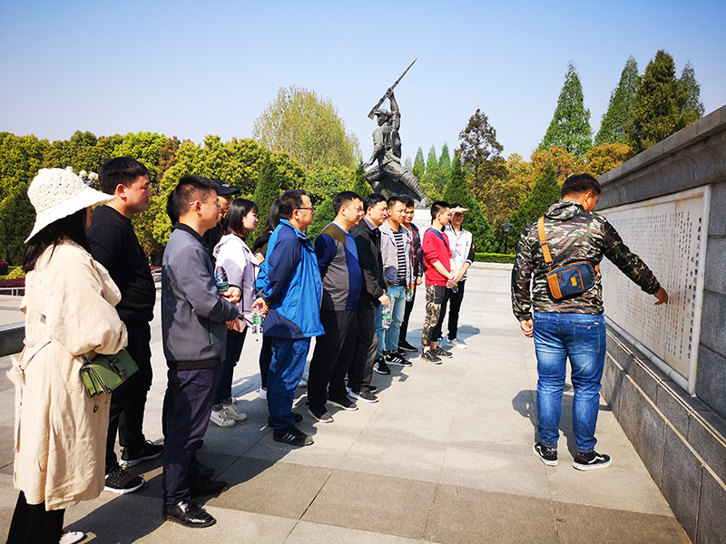 7日上午,項(xiàng)目部一行二十余人懷著無比崇敬的心情來到教育活動(dòng)的第一站——黃麻起義和鄂豫皖蘇區(qū)革命烈士陵園。邁過大門,穿過一片林蔭大道,來到巍然聳立的烈士紀(jì)念碑前,大家瞻仰先烈,認(rèn)真閱讀碑文,感受革命先驅(qū)為家、為國(guó)的大無畏犧牲精神。“小小黃安,人人好漢。銅鑼一響,四十八萬。男將打仗,女將送飯”,紀(jì)念碑背面這首簡(jiǎn)單的童謠更是敲擊著我們的內(nèi)心:是無數(shù)的烈士用他們的生命和鮮血換來我們今天的幸福生活,我們還有什么理由不珍惜?!
