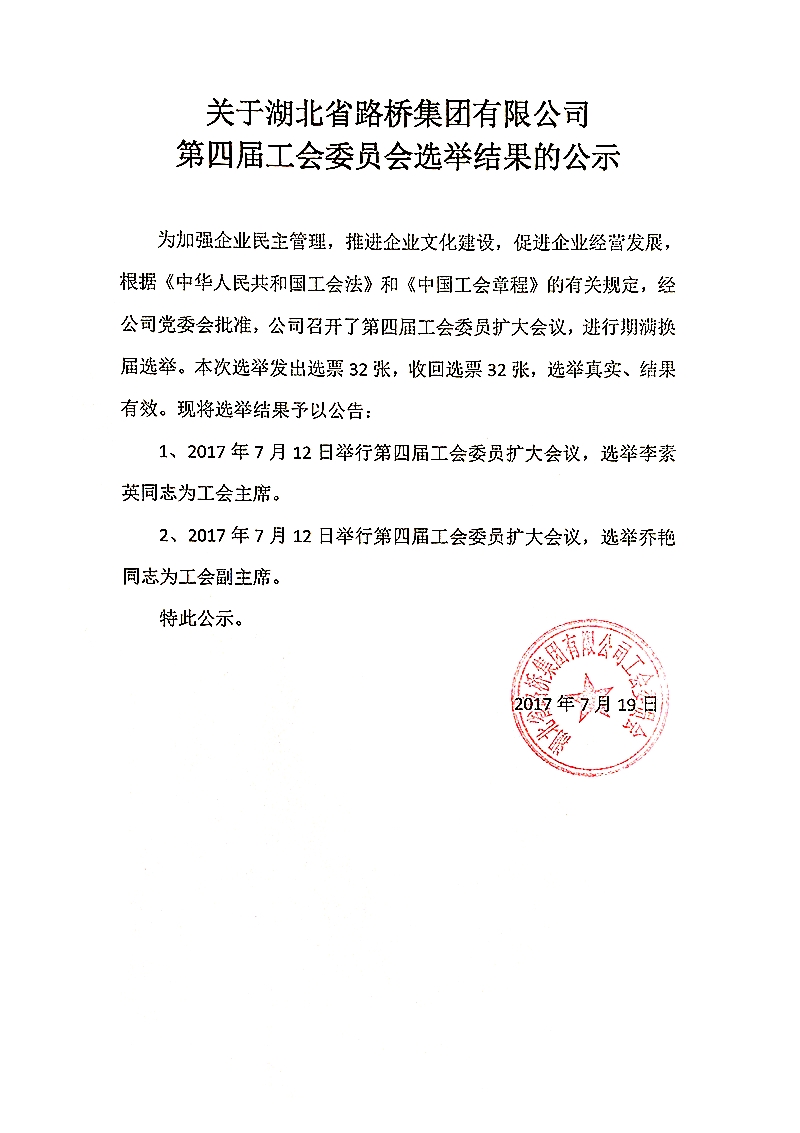 湖北省路橋集團(tuán)有限公司 評優(yōu)評先評選結(jié)果公示