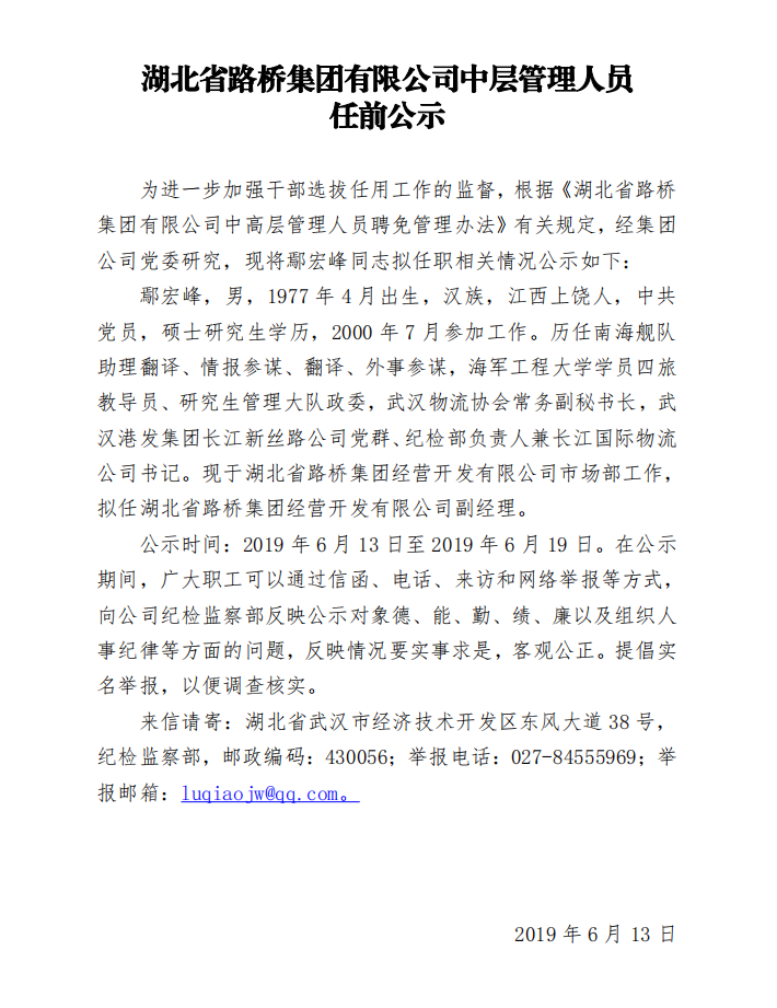 湖北路橋2018年關(guān)于擬轉(zhuǎn)聘人員的公示