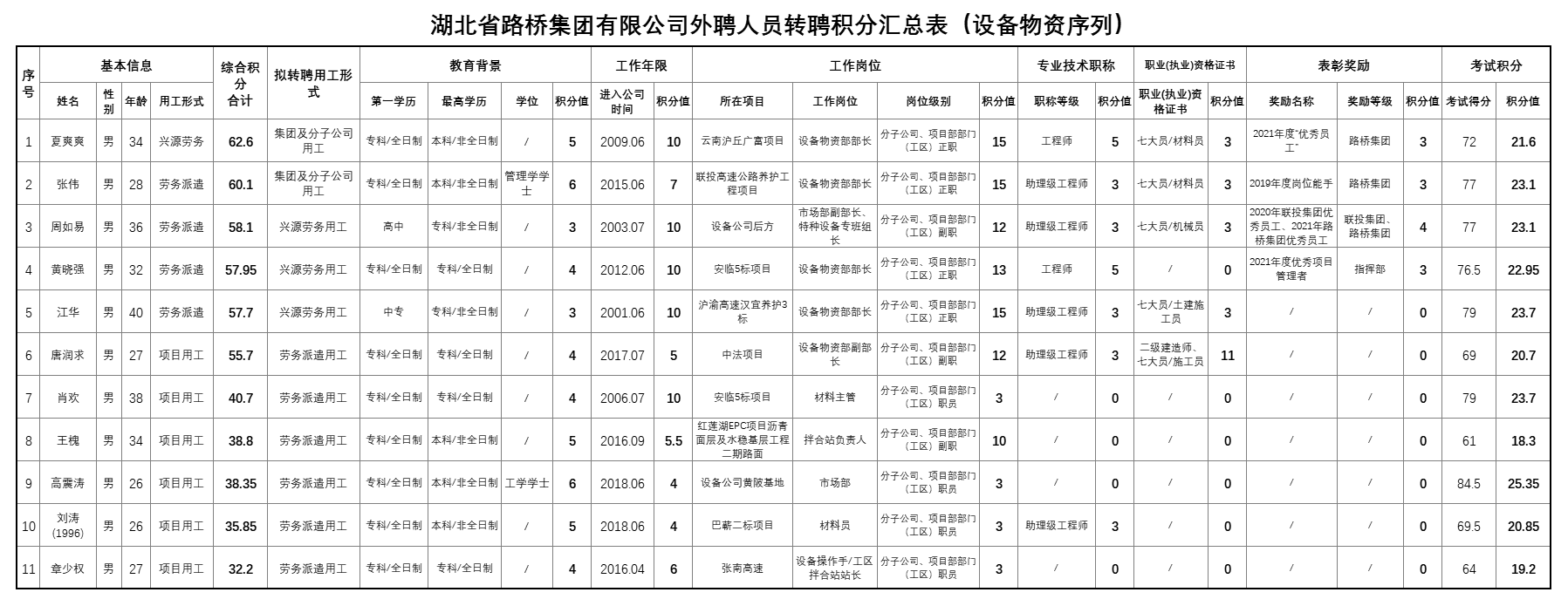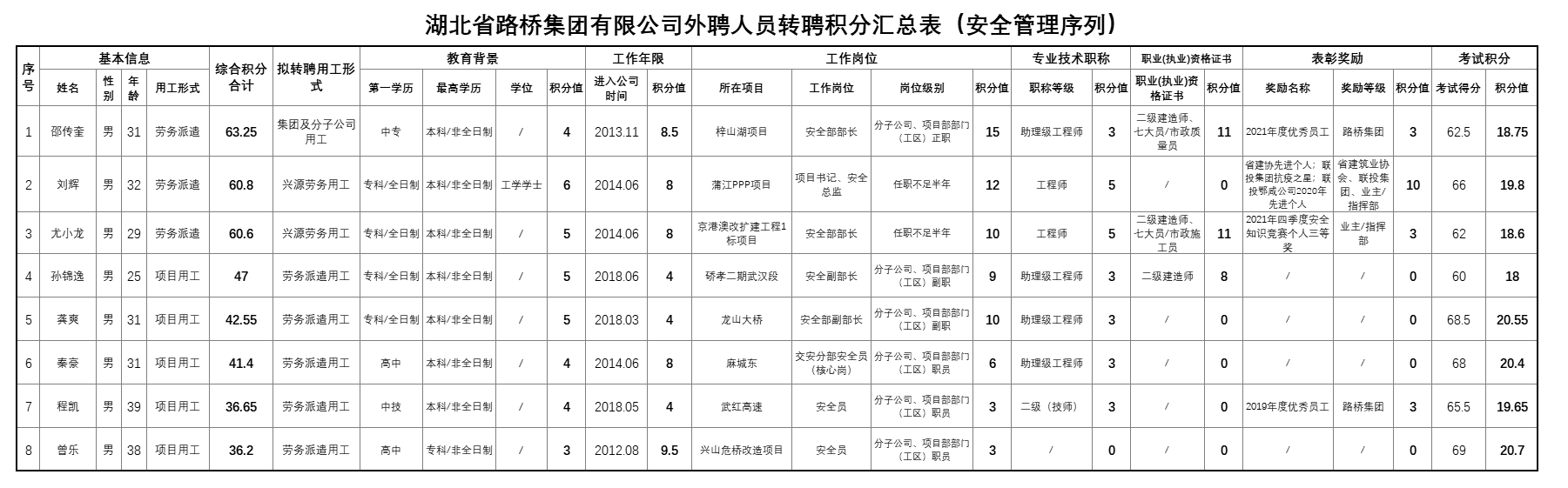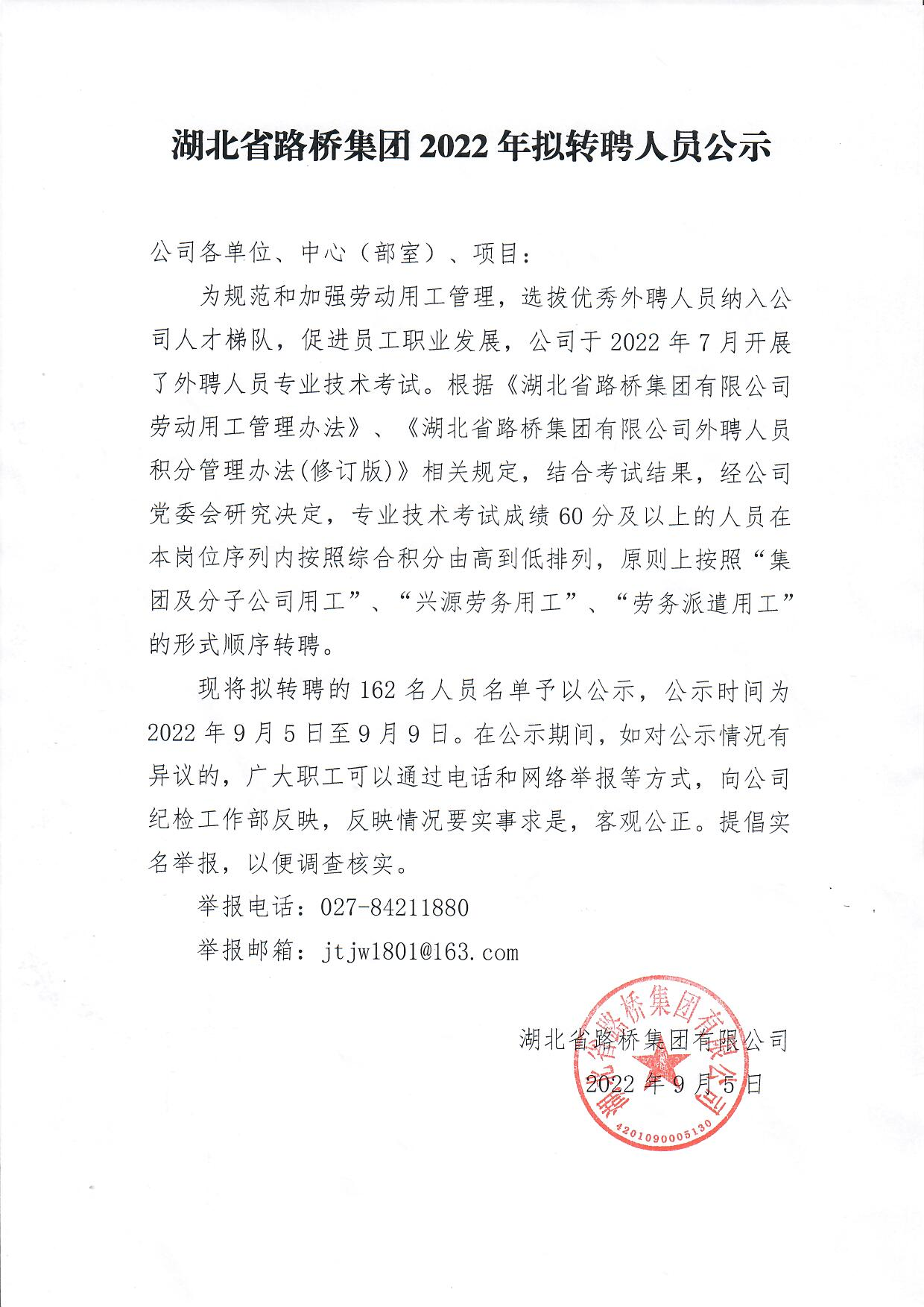 湖北省路橋集團有限公司2022年擬轉(zhuǎn)聘人員公示