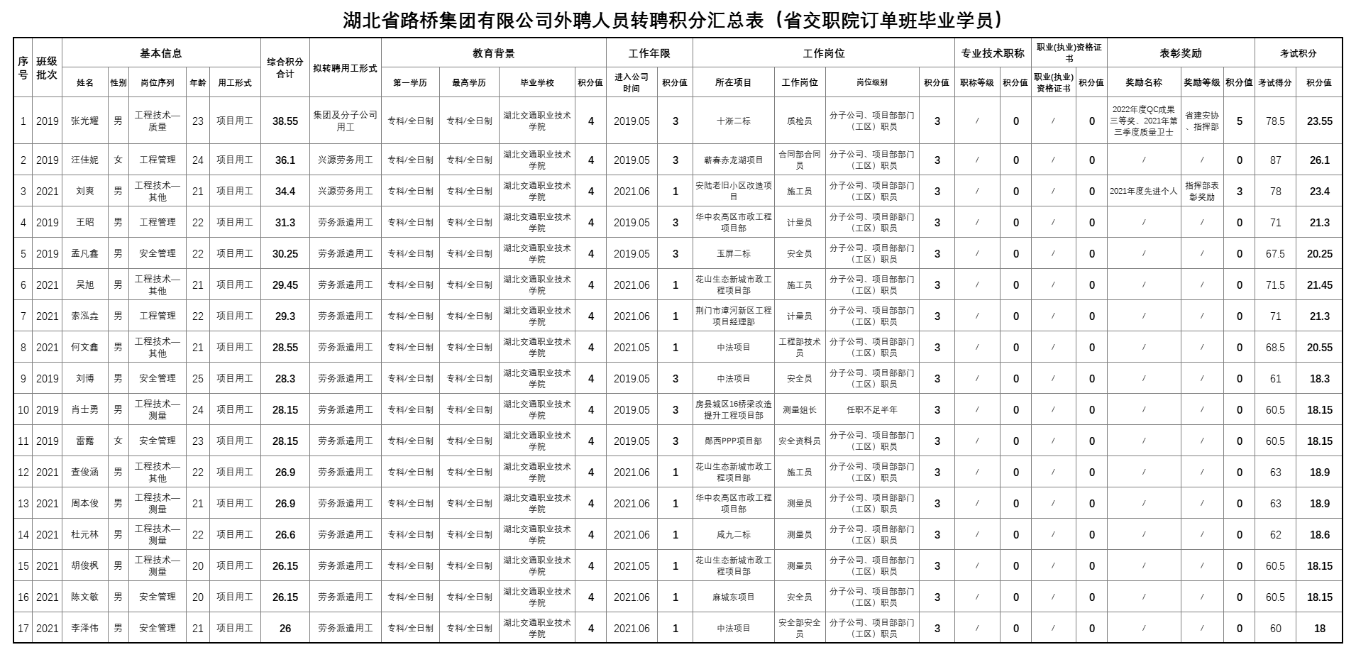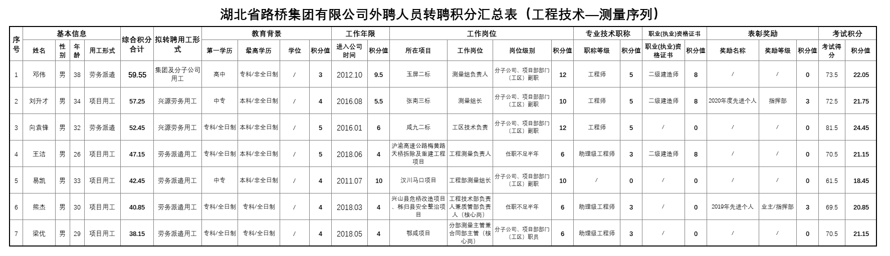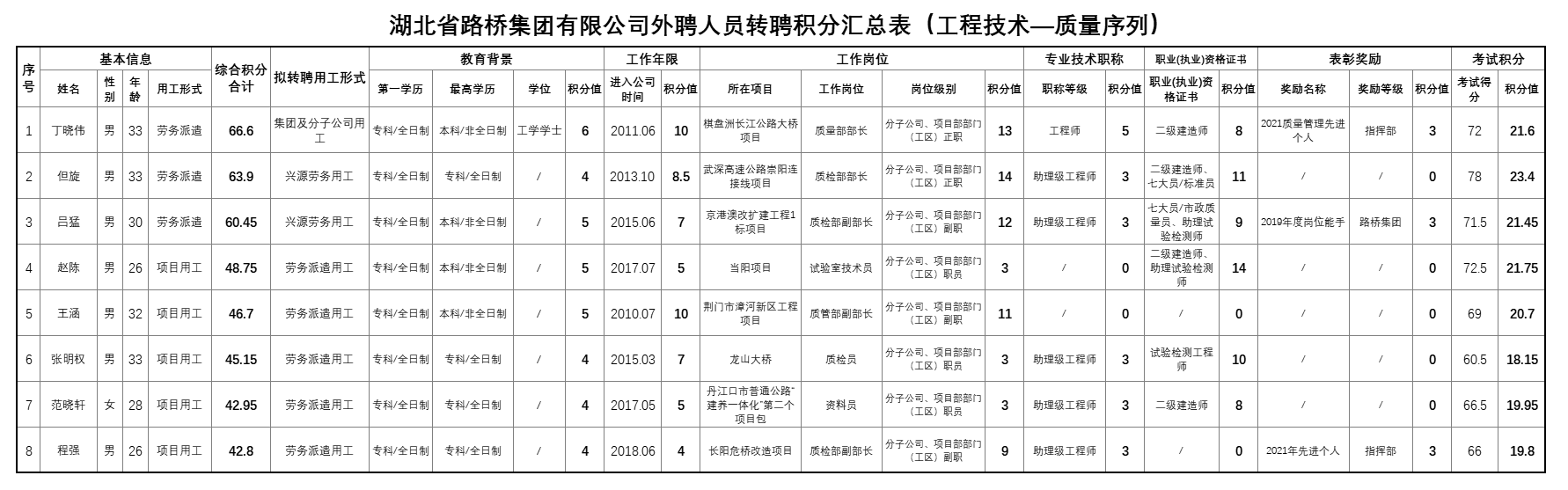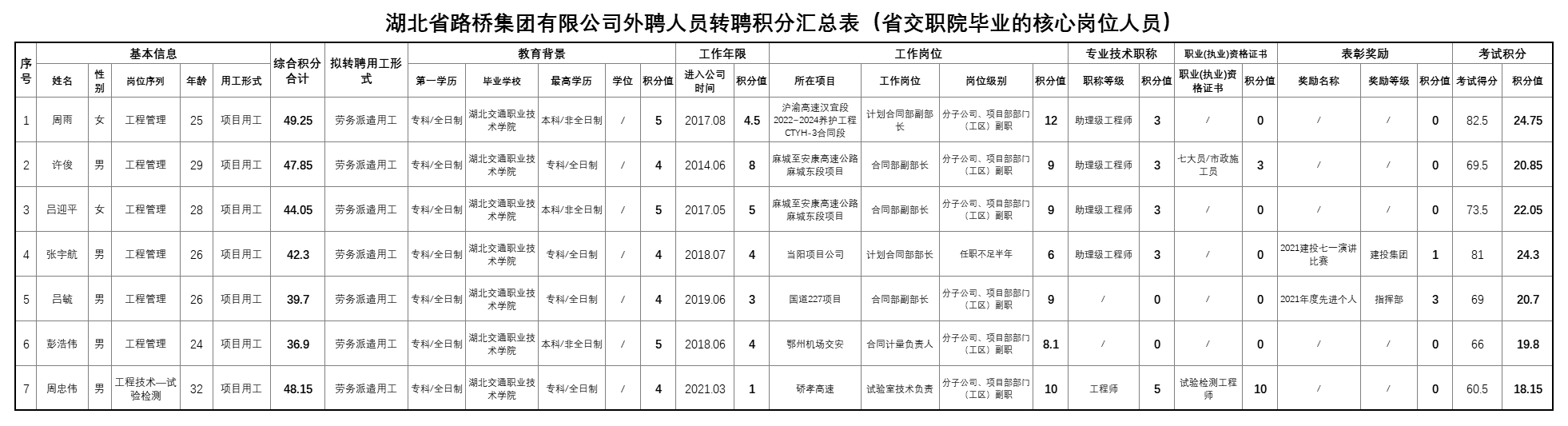 湖北省路橋集團有限公司2022年擬轉(zhuǎn)聘人員公示