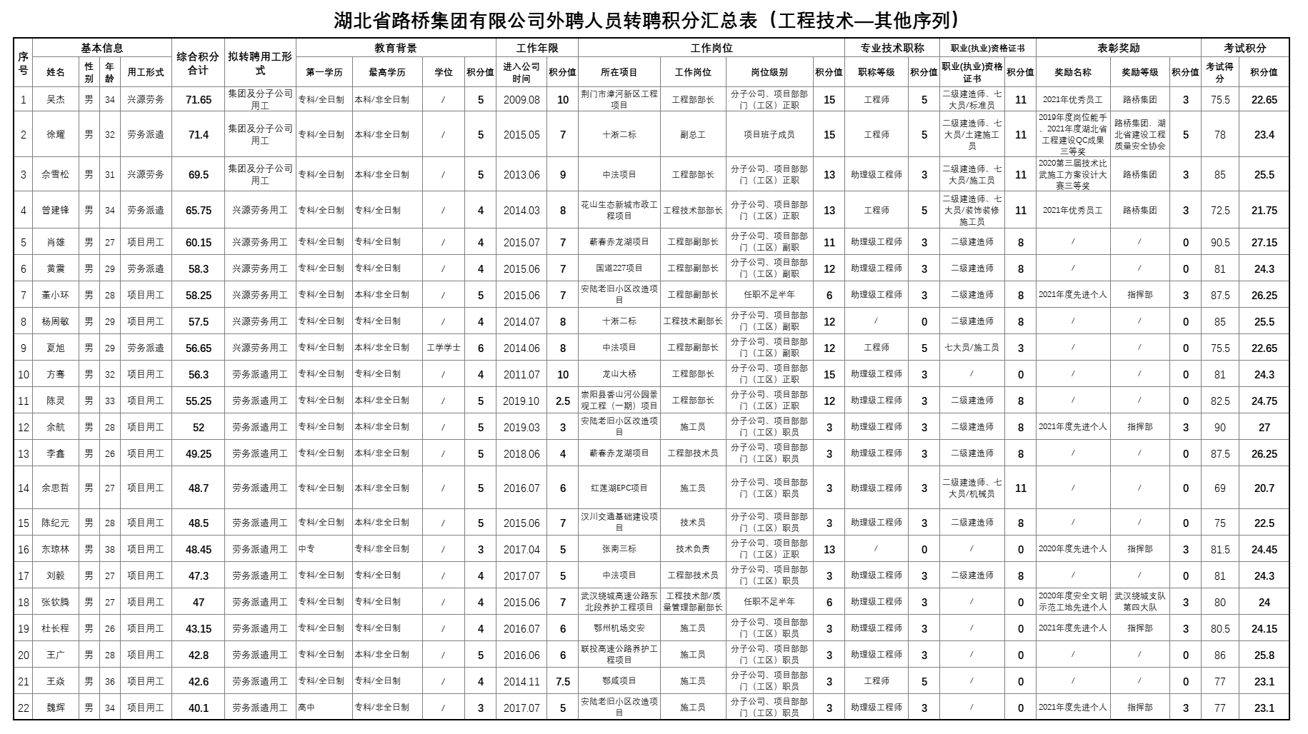 湖北省路橋集團有限公司2022年擬轉(zhuǎn)聘人員補充公示