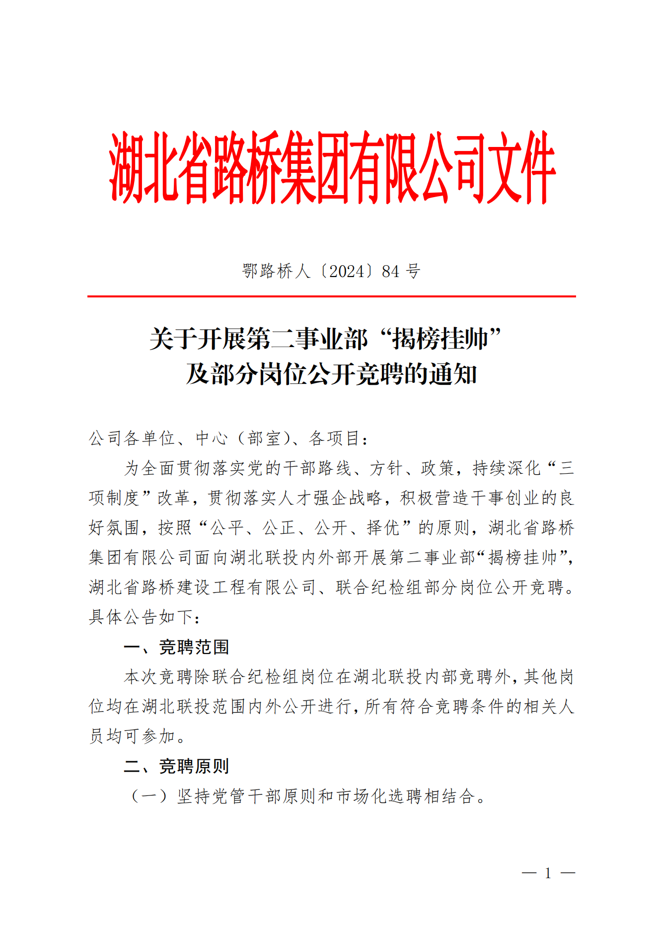 人才強(qiáng)企丨湖北省路橋集團(tuán)有限公司下屬橋隧公司經(jīng)營層團(tuán)隊(duì)組閣競聘考察對象的公告