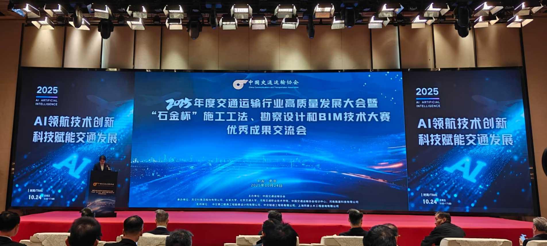 10月24日,由中國交通運輸協(xié)會主辦的“2025年度交通運輸行業(yè)高質量發(fā)展大會暨‘石金杯’施工工法、勘察設計和BIM技術大賽優(yōu)秀成果交流會”在江蘇南京成功召開,會上對獲獎成果進行了表彰。