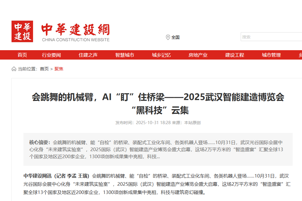 媒體聚焦 | 會跳舞的機械臂,AI“盯”住橋梁——2025武漢智能建造博覽會“黑科技”云集