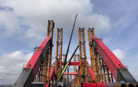 目前,水都二橋工程全橋下部結(jié)構(gòu)、引橋上部混凝土主體結(jié)構(gòu)和主橋主梁鋼結(jié)構(gòu)全部完成,正在進(jìn)行鋼拱肋拼裝、引橋附屬設(shè)施工作,項(xiàng)目計(jì)劃五月中旬前完成第三跨鋼拱肋提升工作,七月份左右完成全橋鋼拱肋安裝提升、主橋UHPC施工、附屬設(shè)施等工作。水都二橋建成后,將與水都大橋配合協(xié)調(diào)使用,對(duì)改善丹江口市交通環(huán)境,具有非常重要的意義。湖北路橋?qū)⒓哟筚Y源投入,合理組織、精心安排,爭取水都二橋工程早日建成通車。
