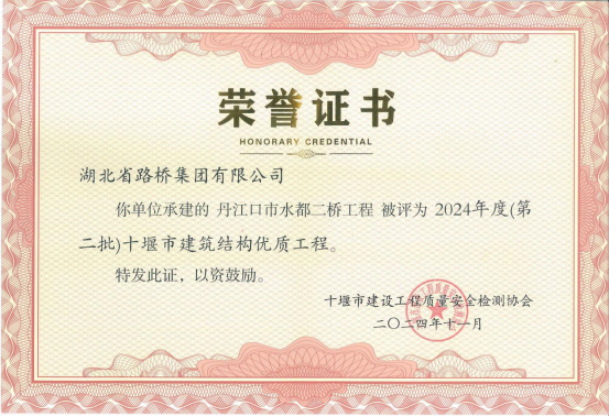 近日,十堰市建設質(zhì)量安全檢測協(xié)會公布2024年度(第二批)“十堰市建筑結(jié)構優(yōu)質(zhì)工程”和“建筑工程安全文明施工現(xiàn)場”獲獎名單,湖北路橋承建的丹江口市水都二橋工程榮登榜單,喜獲“質(zhì)安”雙獎。